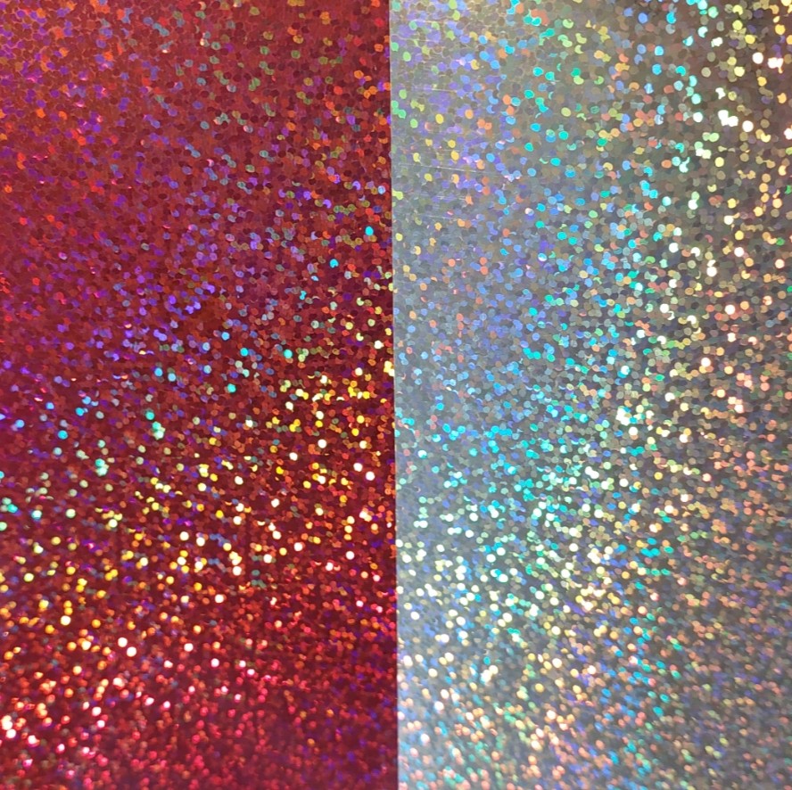 Valikoima kauniita hologrammi, glitter ja kuviokalvoja